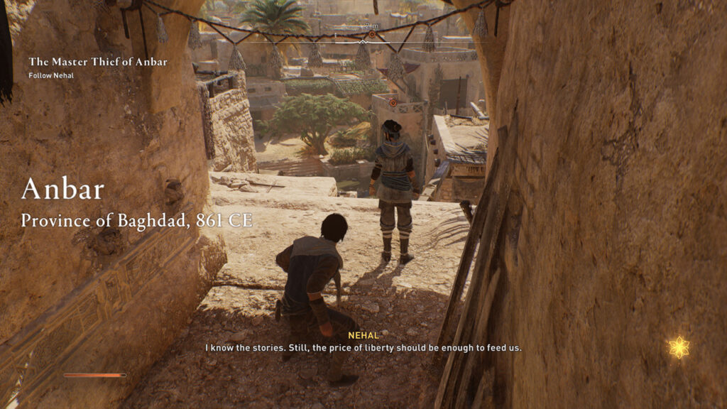 Розвиток персонажа не обмежується діалогами та сценарієм подій. Візуальне оповідання також є потужним інструментом у Assassin’s Creed Mirage. Анімація персонажів, вирази обличчя та те, як персонажі взаємодіють із навколишнім середовищем, дають тонкі підказки про їхній розвиток та емоції. Використання в грі візуального оповідання покращує глибину розвитку персонажа.