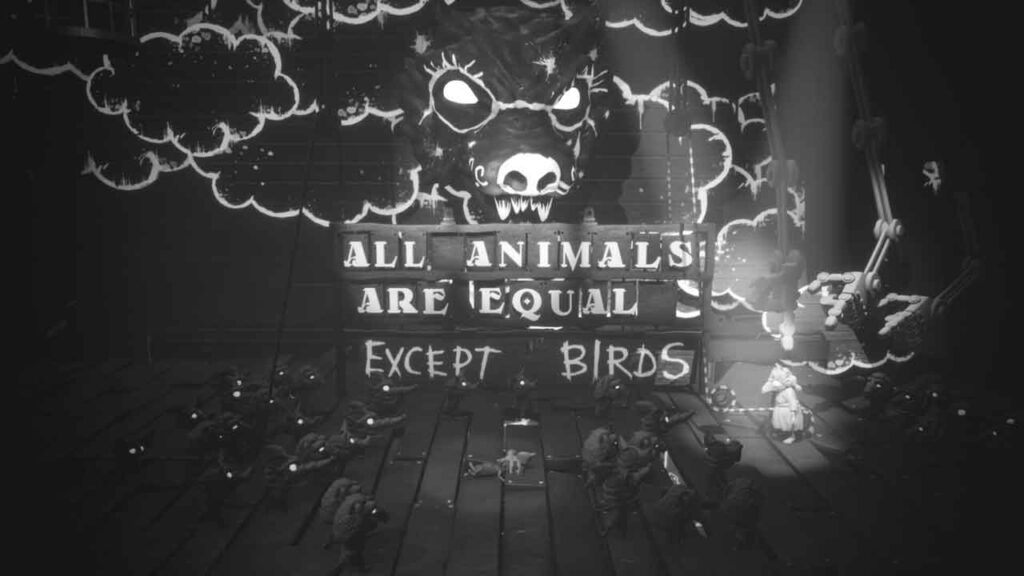 Головний герой гри іноді повинен проходити під ногами цих тварин і свиней. Свині, які набагато більші за звичайні, б’ють ногами об землю і якимось чином задіяні в ігровому процесі. Ви повинні мати свого головного героя як дівчину. Є ворона, пройдіть їм під ноги, щоб дістатися до наступного етапу.